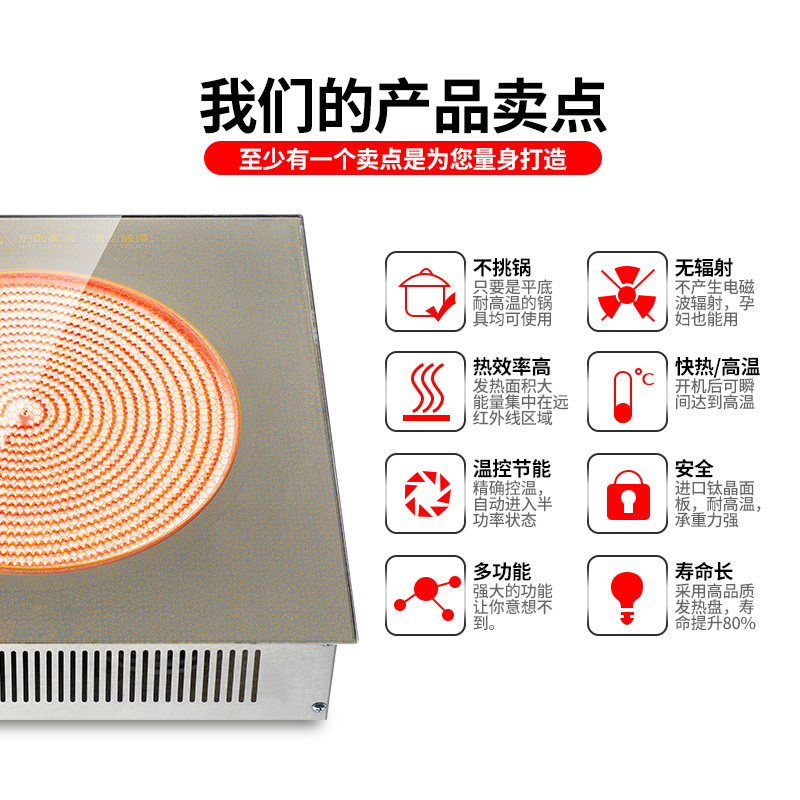 方形鈦晶板電陶爐嵌入式線控火鍋店專用電陶爐