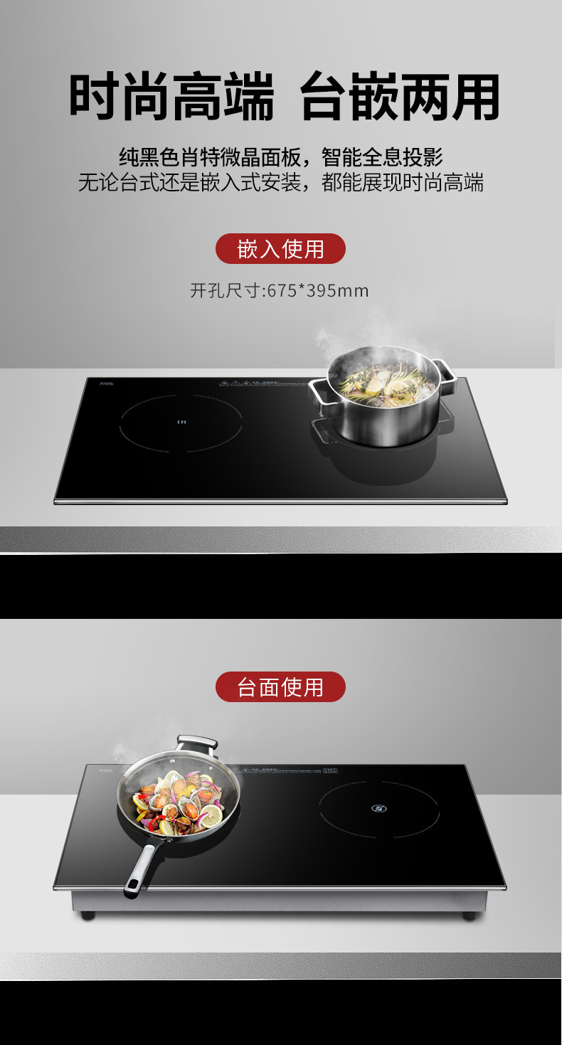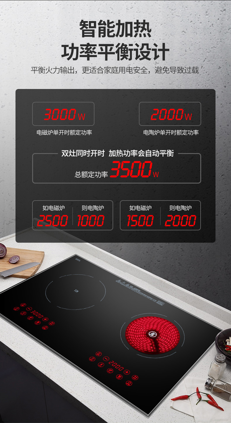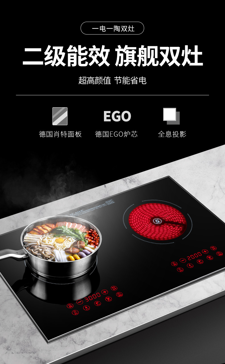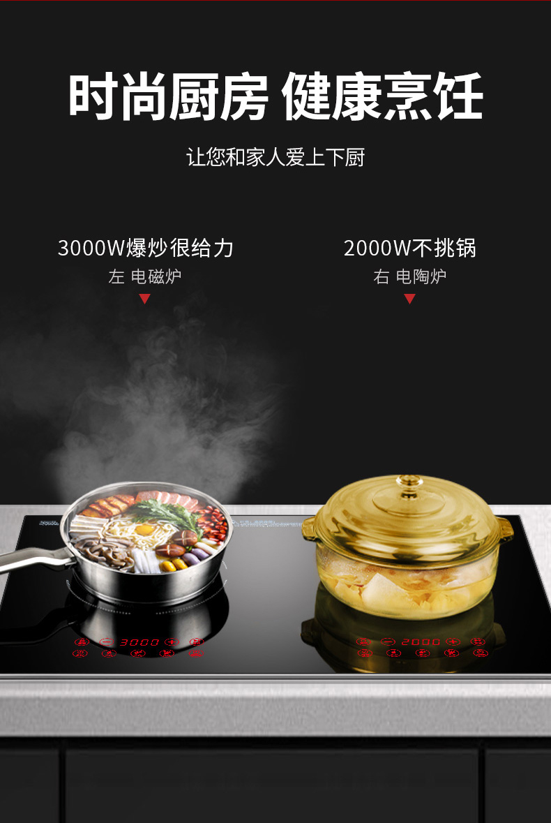 3500W嵌入式電陶爐電磁爐雙灶20檔火力觸摸控制