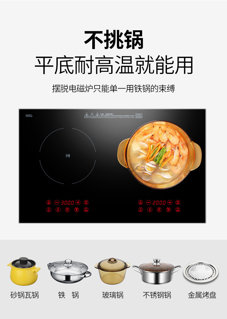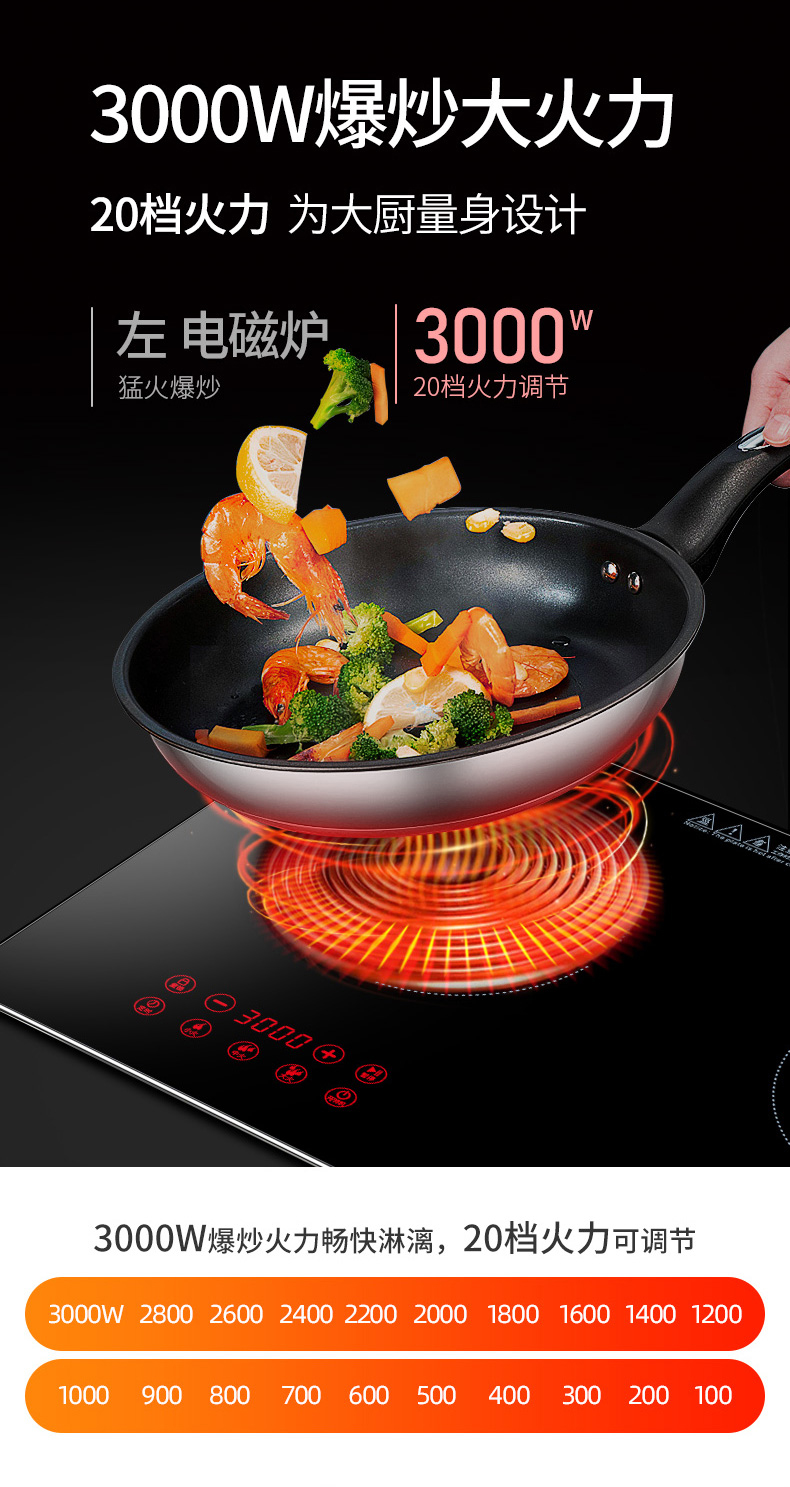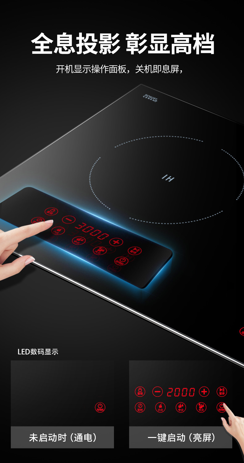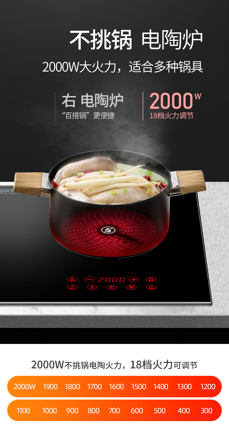 3500W嵌入式電陶爐電磁爐雙灶20檔火力觸摸控制