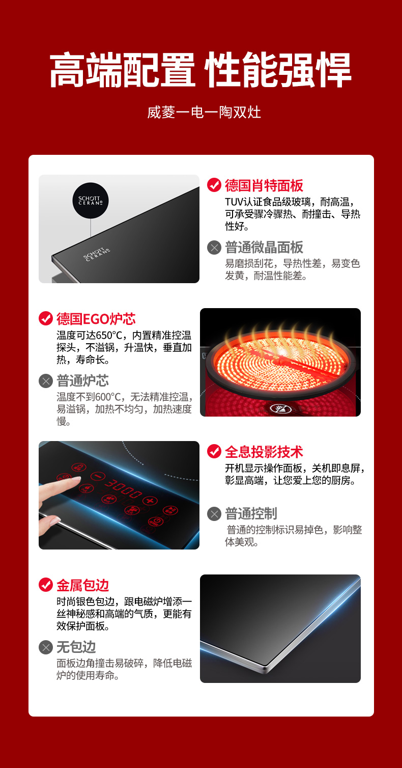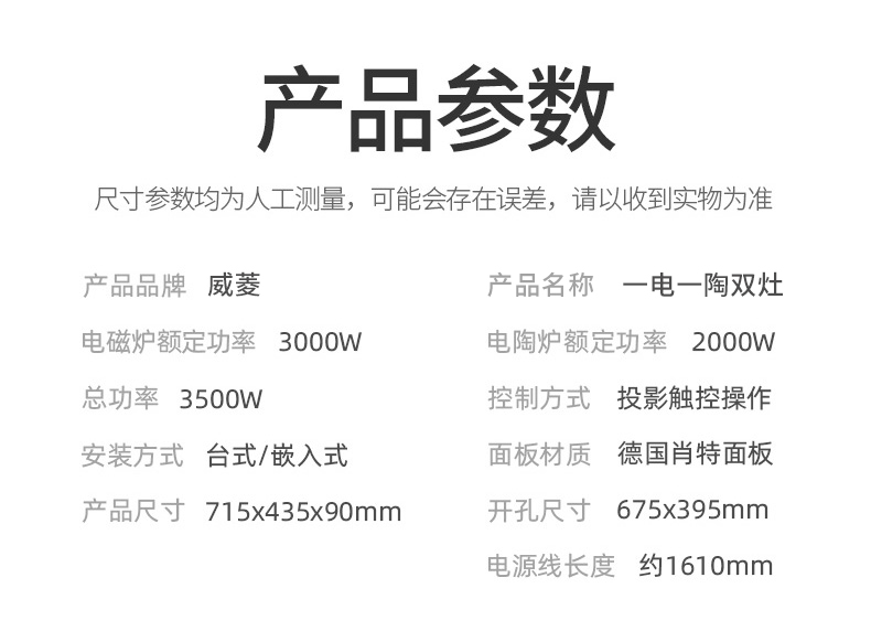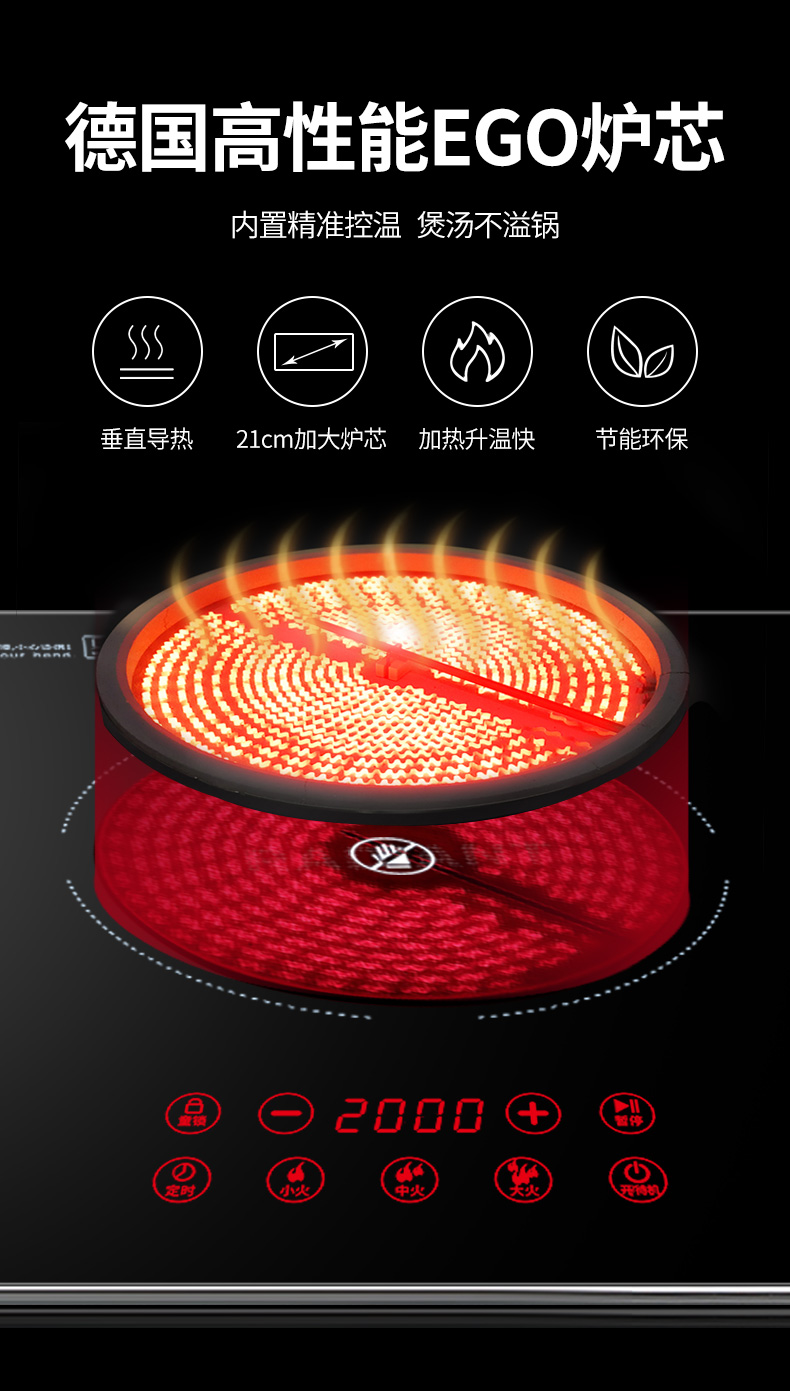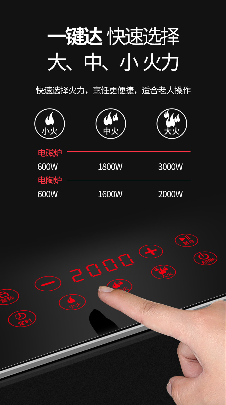 3500W嵌入式電陶爐電磁爐雙灶20檔火力觸摸控制
