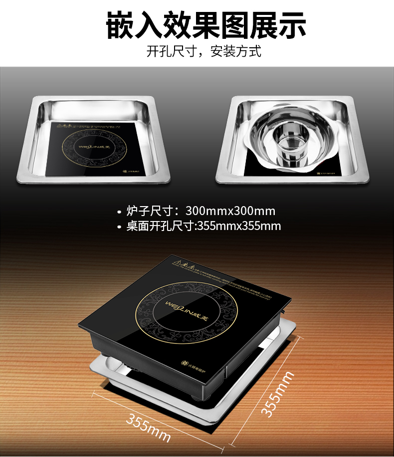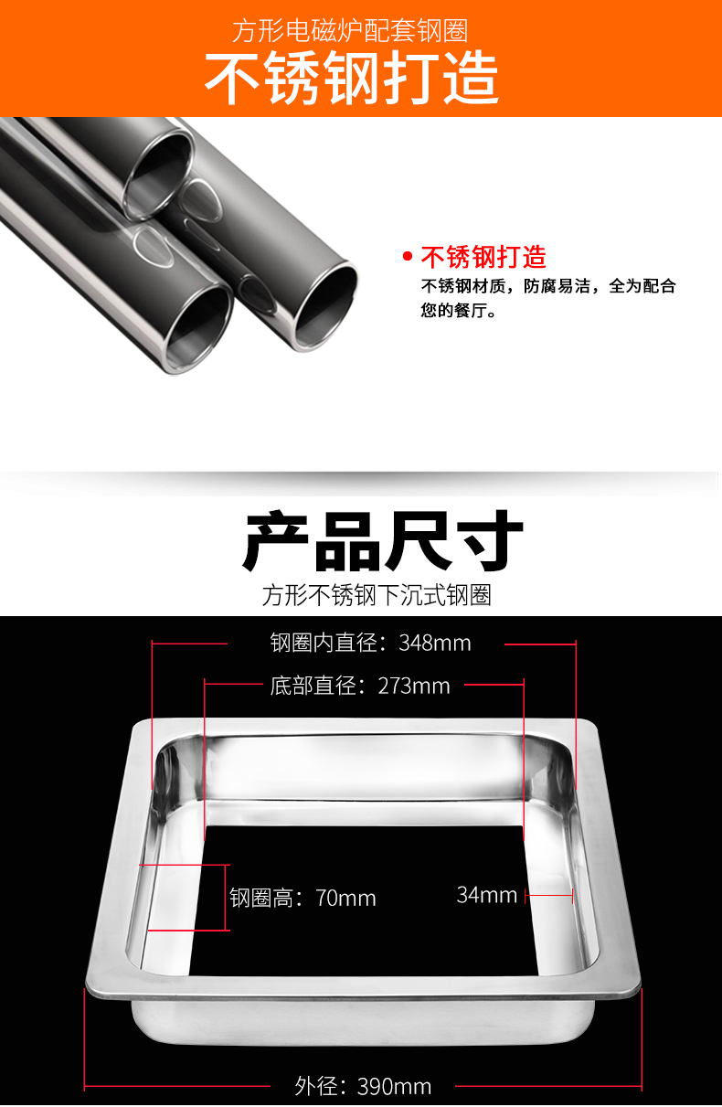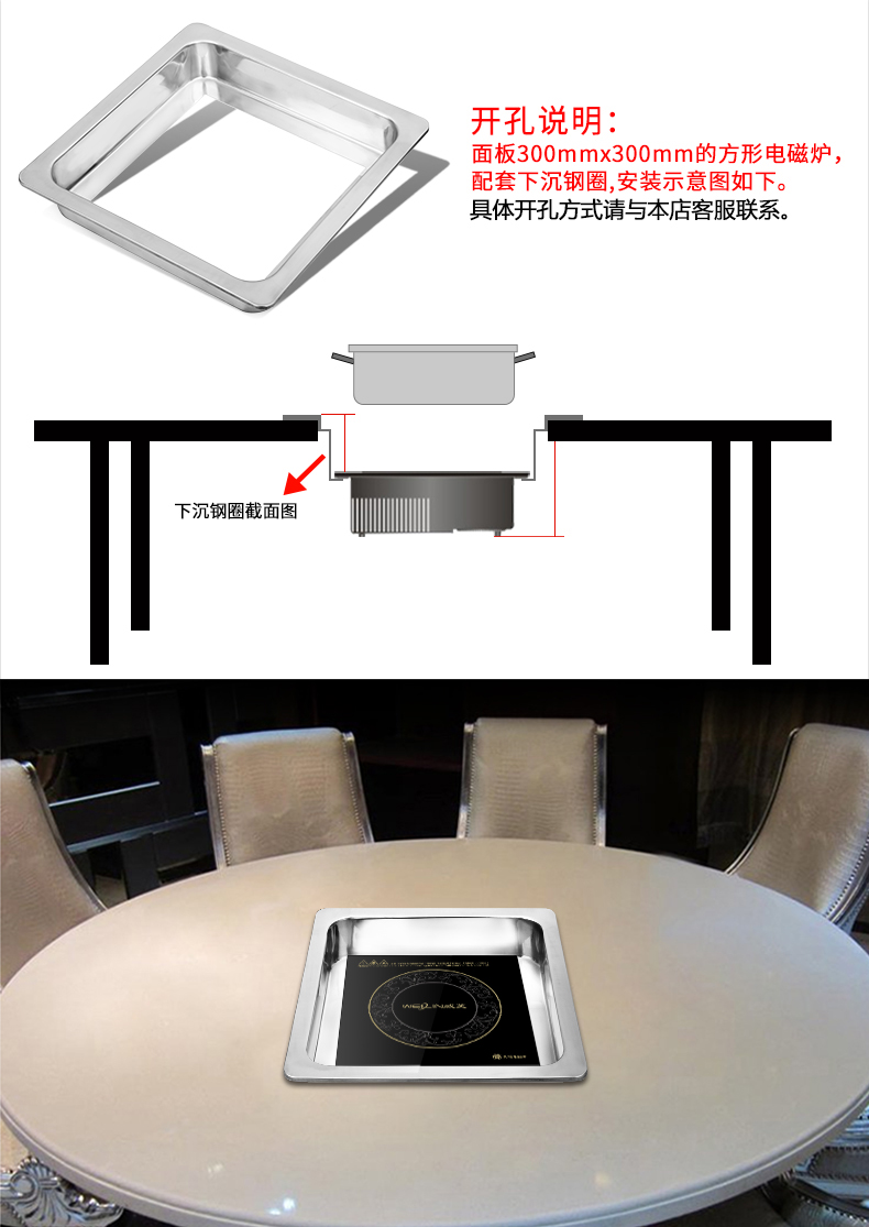 方形電磁爐下沉式不銹鋼鋼圈配套