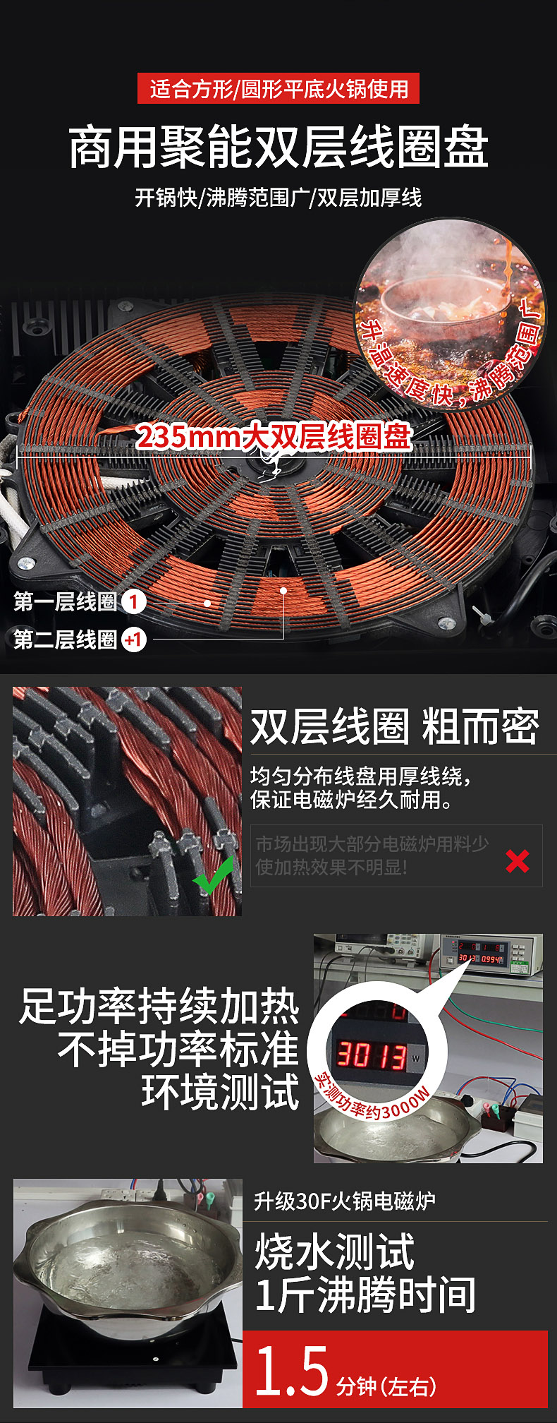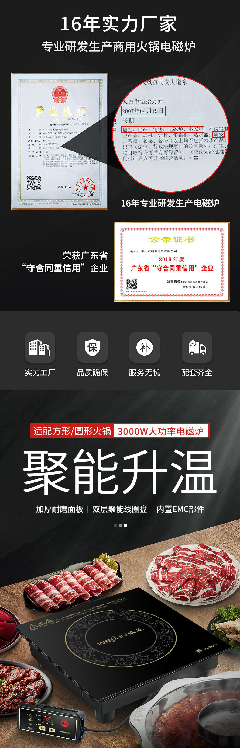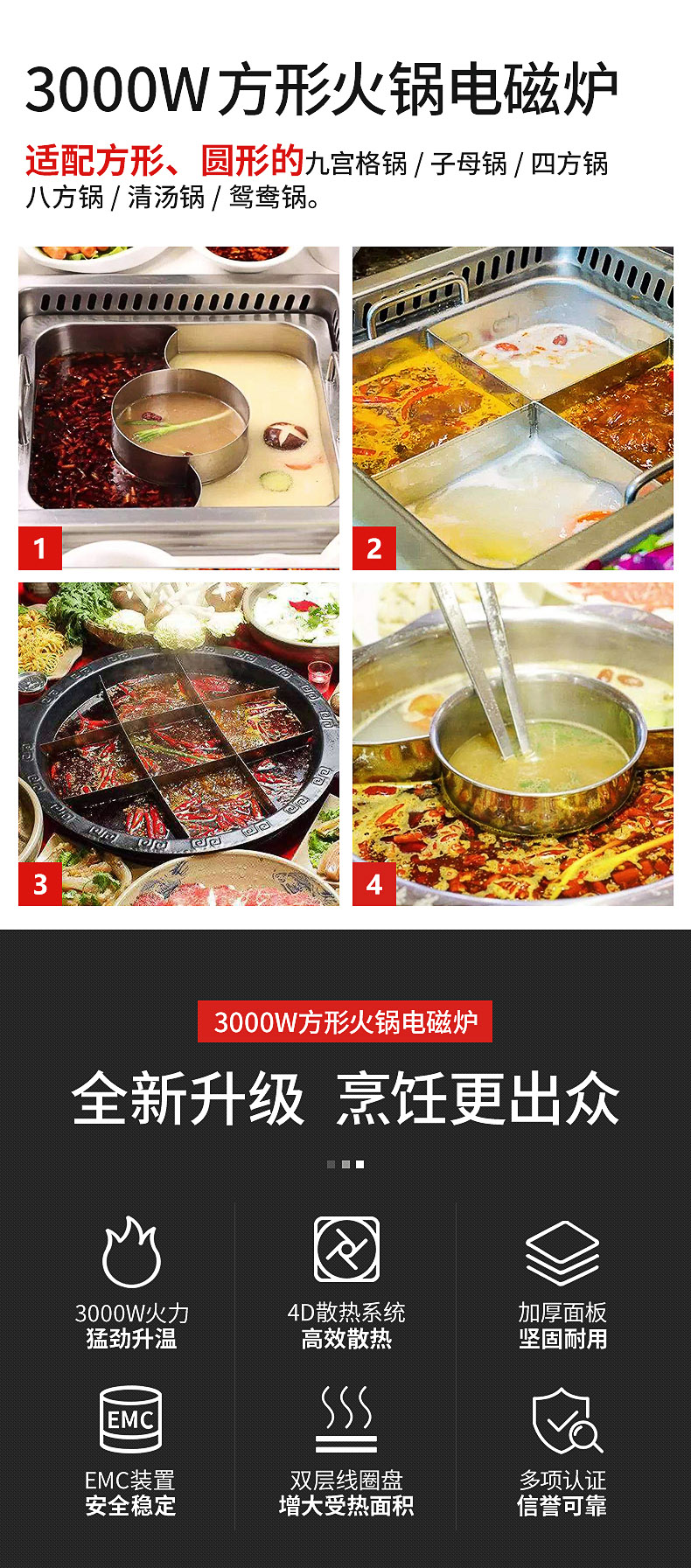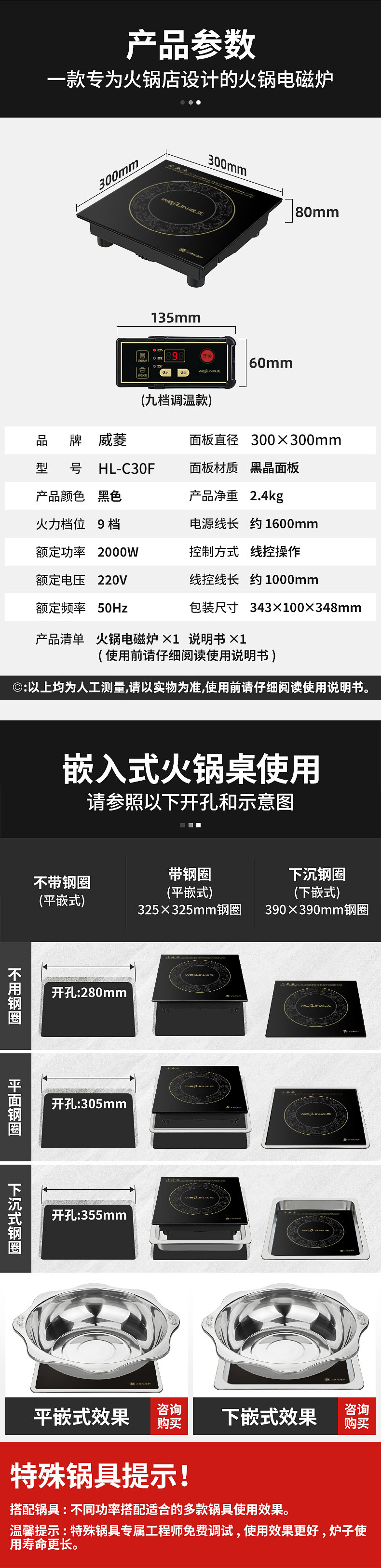 3000W /300mm×300mm 火鍋店嵌入式大功率火鍋電磁爐