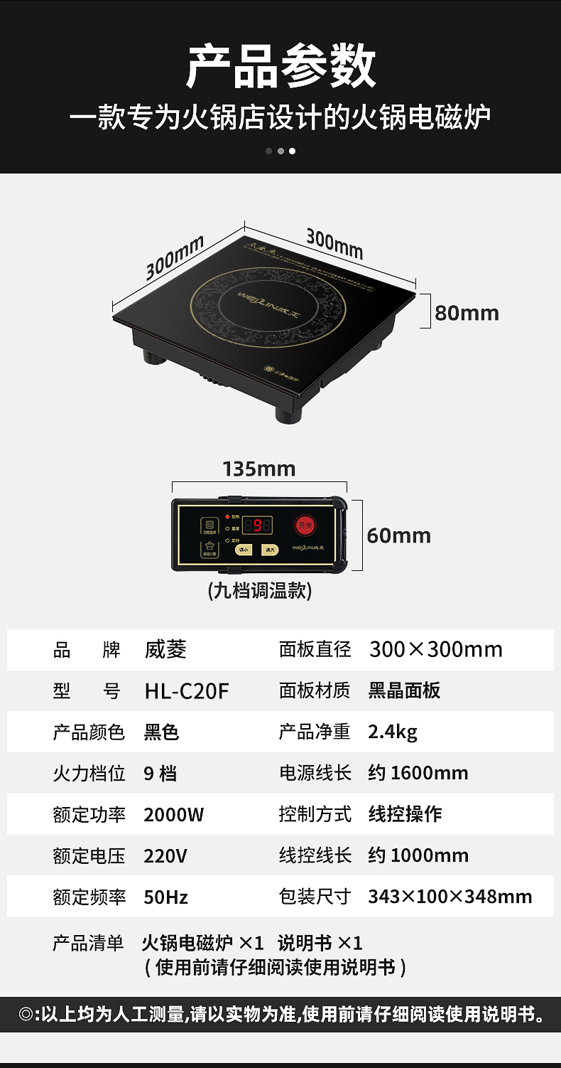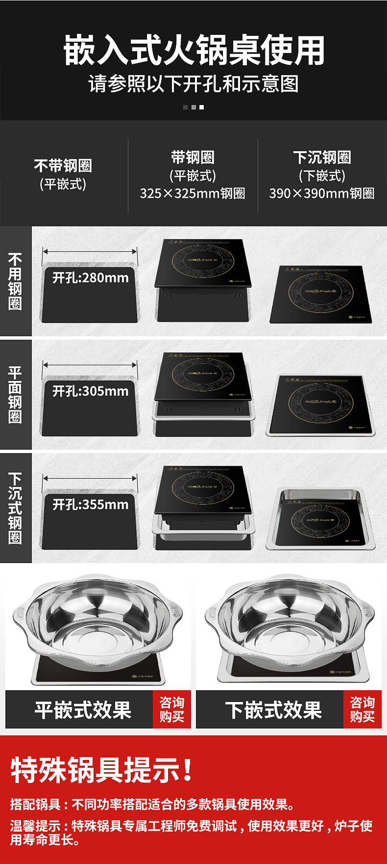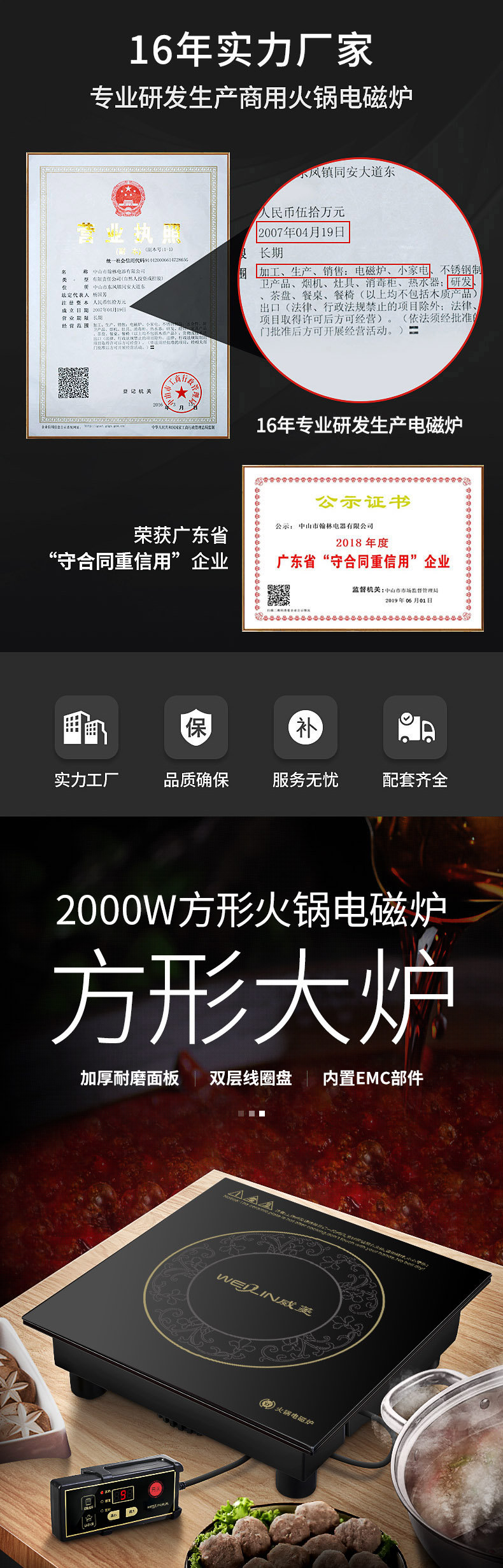 廠家直供 威菱2000w大功率火鍋店電磁爐 30*30cm嵌入式火鍋電磁爐
