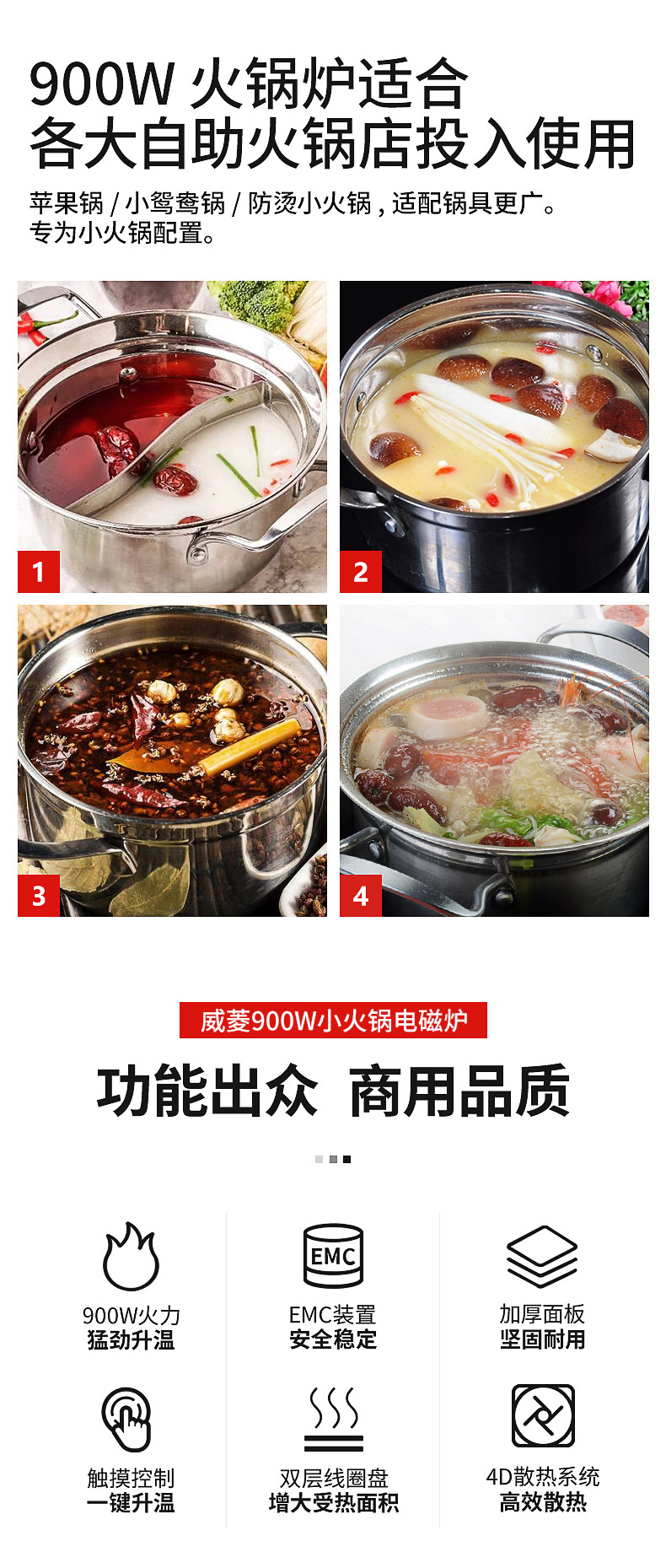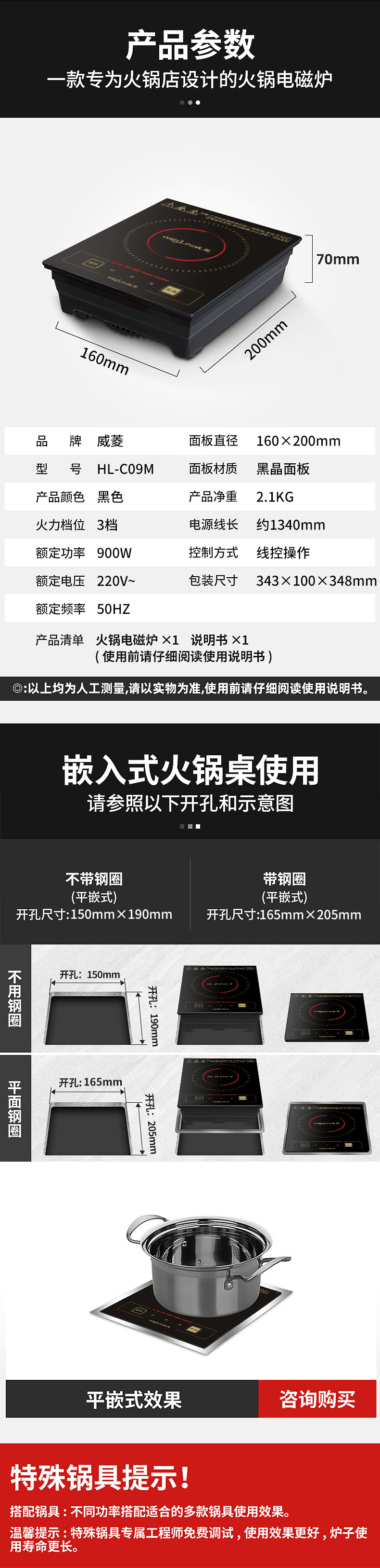 900W /160mm×200mm 火鍋店小功率火鍋電磁爐 觸摸款電磁爐